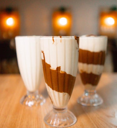 Milk shake de chocolate - Cremoso, geladinho e irresistível! Feito com sorvete de chocolate, leite gelado e uma calda especial, é a escolha perfeita para quem ama um sabor marcante e cheio de sabor. .